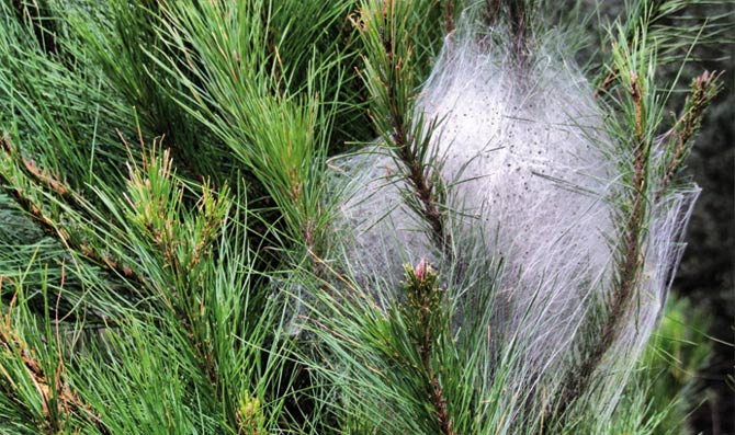 Es una plaga estacional que afecta a los pinos, que según las condiciones climatológicas puede desarrollarse en Octubre o más adelante.